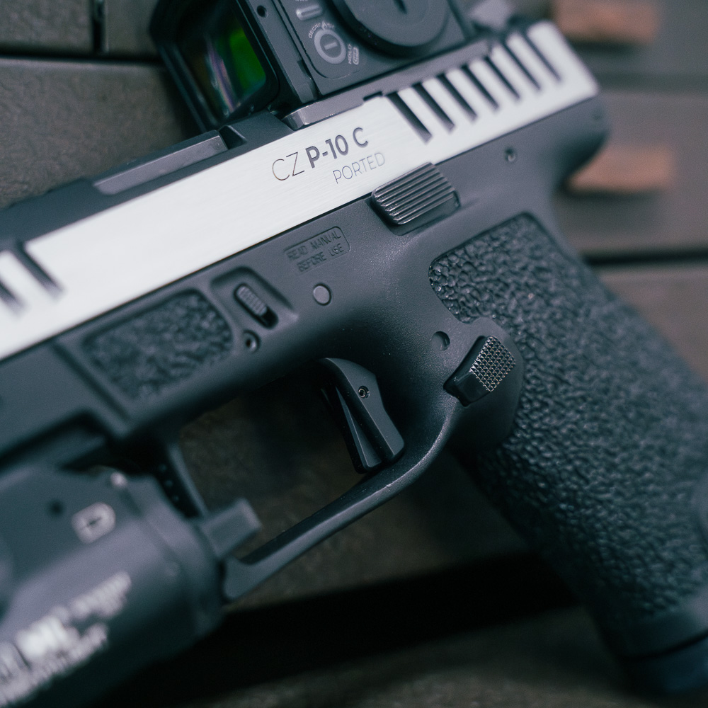 I finally got my CZp10c. I bought the theta trigger and extra mags weeks ago. I shoot a Glock 19x and now the CZ p10. both guns are real nice. The CZ has about 250 rounds through it. I installed the new trigger with red spring. It has made a huge difference, the reset is shorter. on some shoots with the 19X my gun would not shoot. no next shot. I found that I had not let the trigger out enough for it to reset. The CZ does not have this problem. I di not care for the prickly knobs on the grip. I grabbed a dish towel, doubled it and wrapped it around my gun, then put it into my vice. I sand papered the handle and under the trigger this worked. This is m new EDC, the trigger and pistol is SWEET.