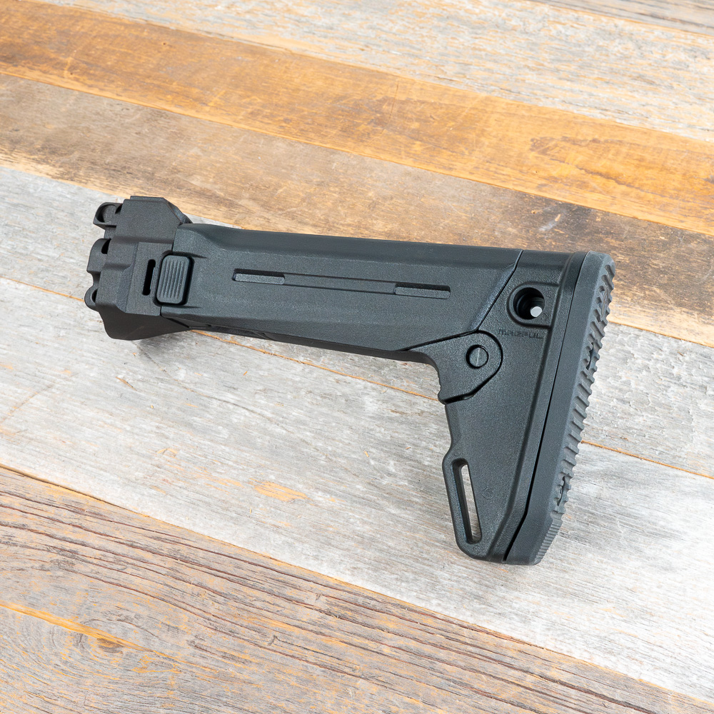Seamlessly adapt the Magpul™ Zhukov-S folding stock to your Springfield Kuna. Our adapter is light weight, low profile, and integrates the Zhukov-S stock directly to the rear trunnion of the Kuna by removing the AK type trunnion adapter supplied with the Magpul™ stocks. Our stock adapter is machined from billet 6061T6 aluminum and hard coat anodized to MIL-A-8625. The Magpul™ Zhukov stock is polymer.